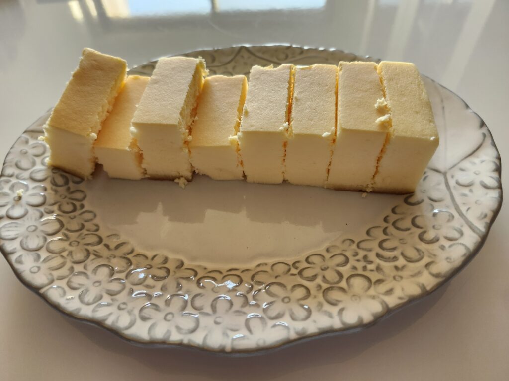 幻のチーズケーキは、凄くふんわりしていて、フォークを入れると驚くほど抵抗がなく、フォークが沈んでいくほどです。