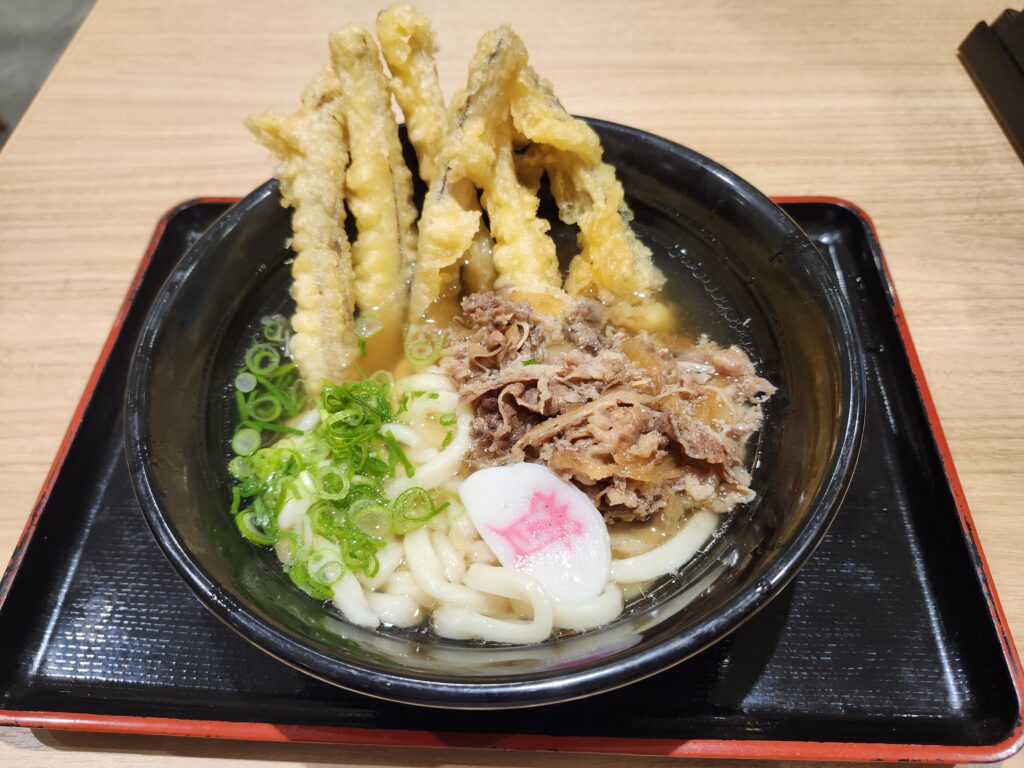 今回は、資さんうどんの「肉ごぼ天うどん」を注文してみました。
