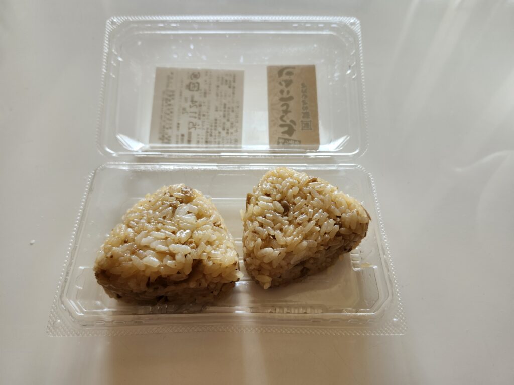 かしわにぎりは、具材の味付けで使った醤油ベースのタレで味付けがされていて、タレの味がご飯に染み込んでいて、素朴でやさしい味わいのあるおにぎりになっています。