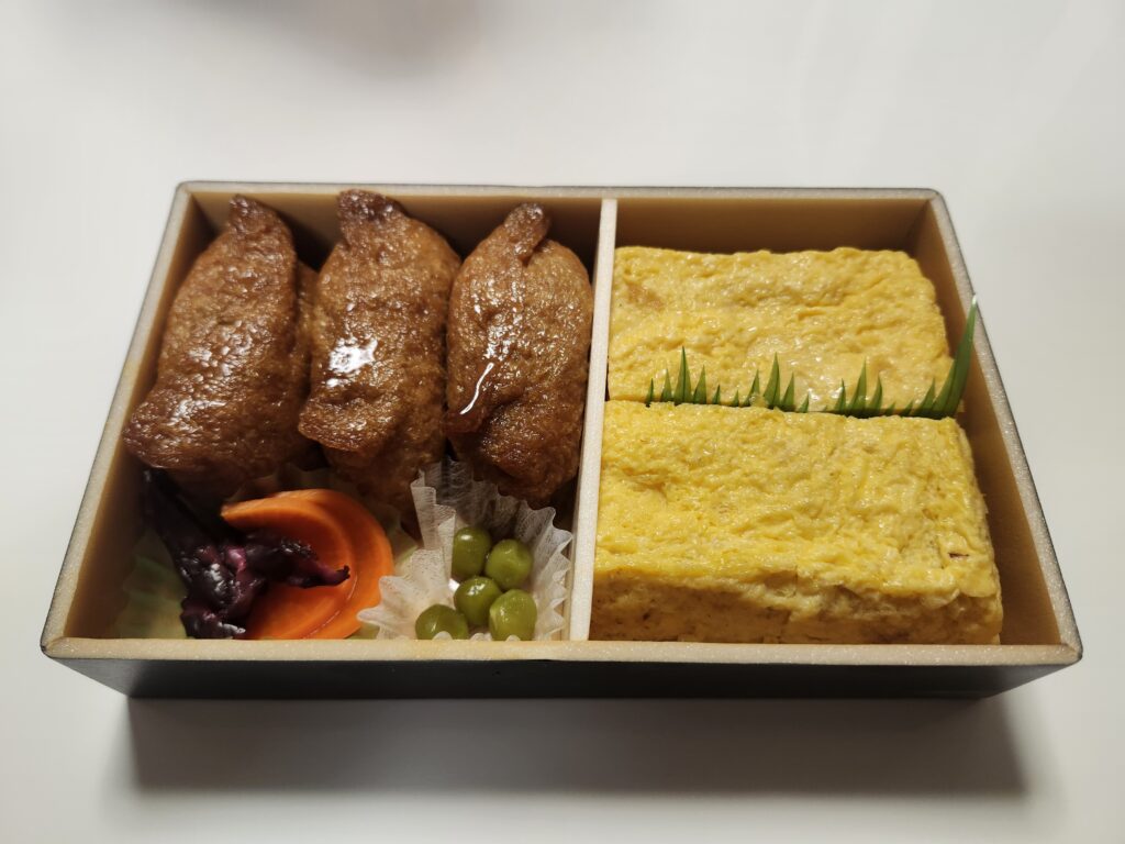いなりは、油揚げに味が付いていて、とてもジューシーで美味しいですね。