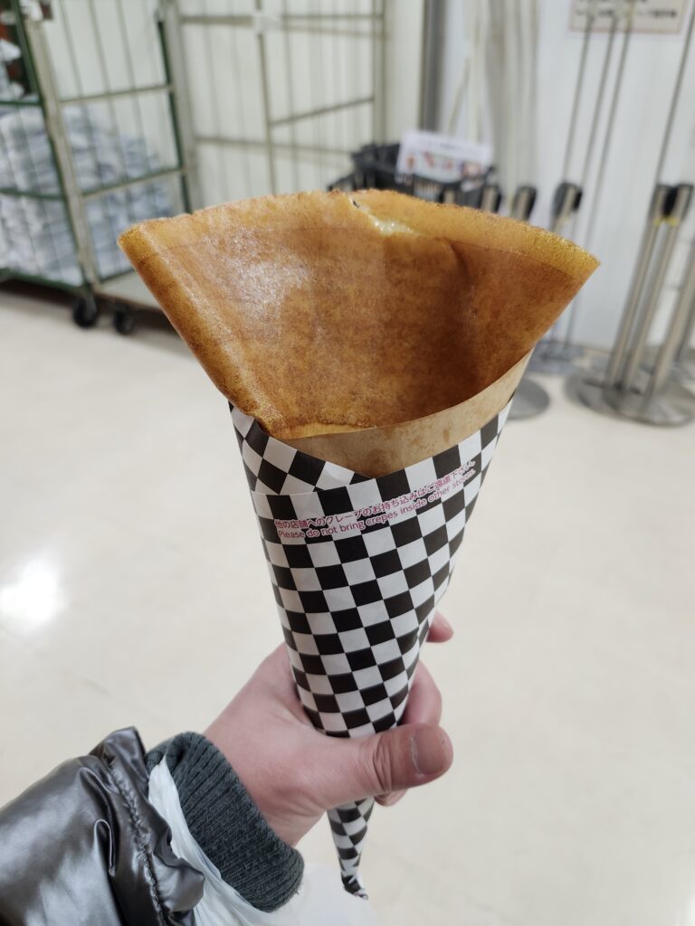 クレープ生地は、焼き立てで外側はサクサクしていますが、内側はしっとりモチモチと対照的な食感を楽しませてくれます。