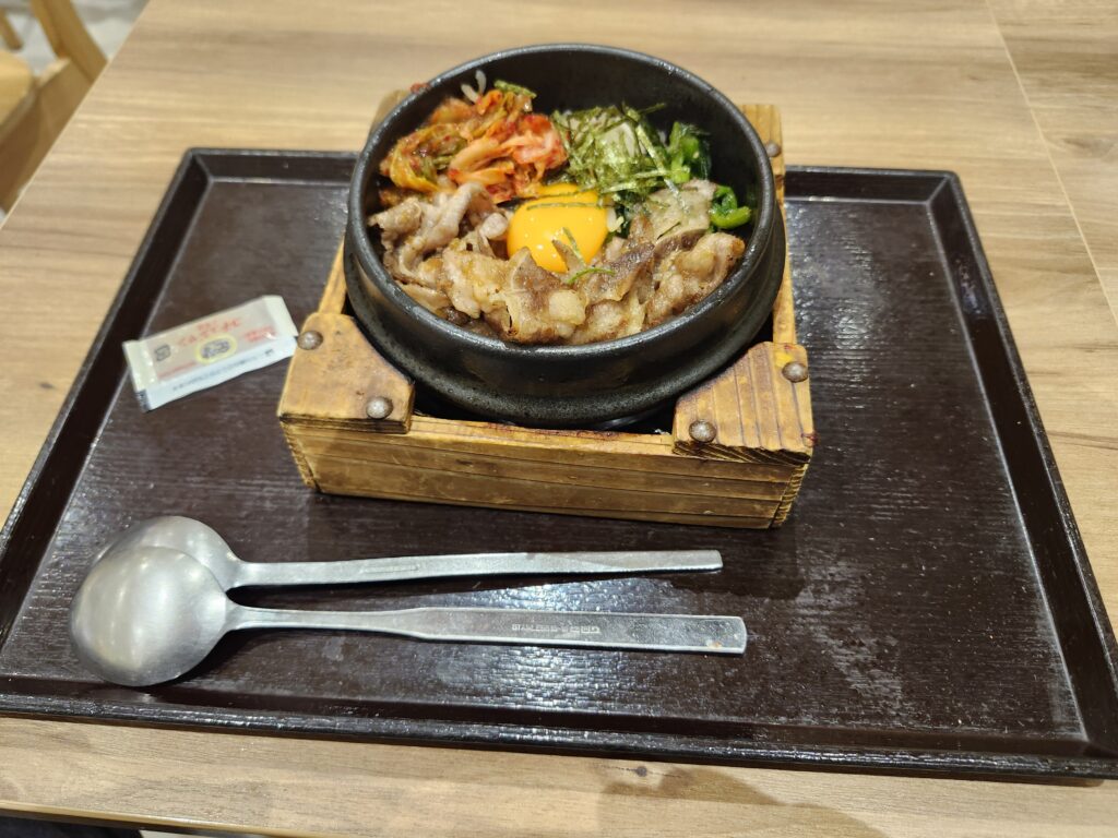 この肉丸商店で石焼ビビンバも提供していたので、今回は「石焼牛カルビビビンバ」を注文してみました。